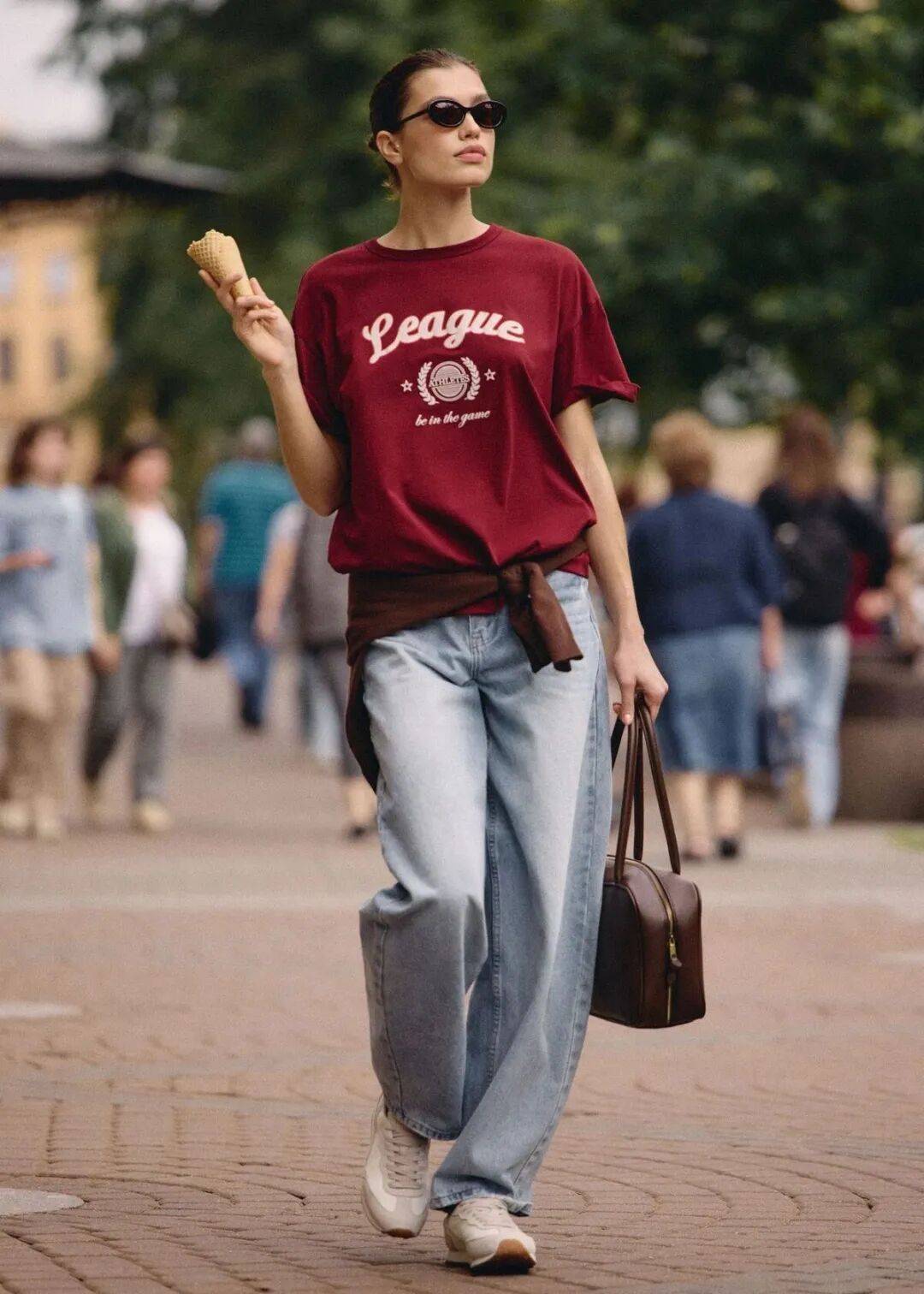 配一条牛仔阔腿裤,