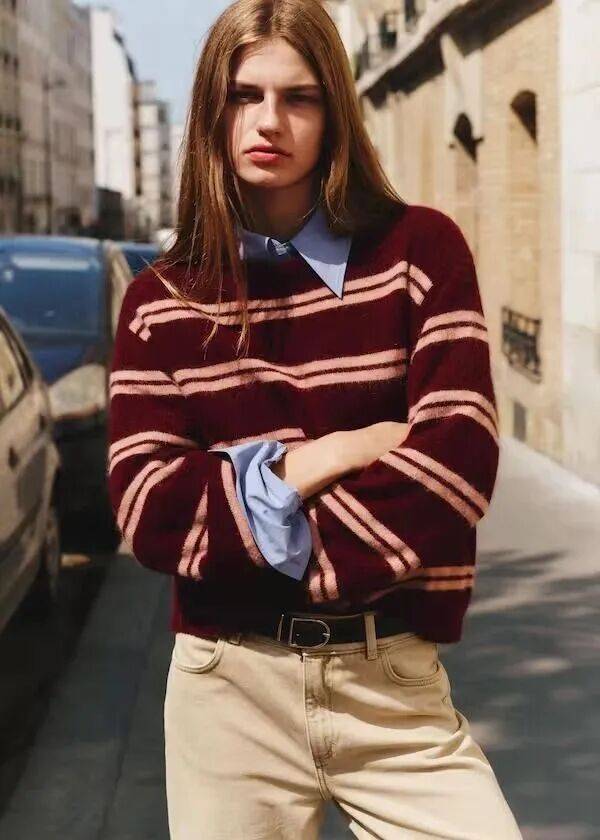 叠穿时,复古红更是游刃有余。